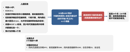 卡瑞利珠单抗是AG庄闲医药自主研发的一种人源化IgG4单克隆抗体,其联合铂类双药化疗已在中国获批用于晚期NSCLC患者的一线治疗5,6。2023年,Ⅱ期CAP-BRAIN研究显示了卡瑞利珠单抗联合治疗方案作为晚期非鳞状NSCLC伴脑转移患者一线治疗的潜力7。本项Ⅱ期研究,旨在研究卡瑞利珠单抗联合脑放疗和铂类双药化疗在未经治疗的晚期非鳞状和鳞状NSCLC伴脑转移患者中的疗效和安全性。